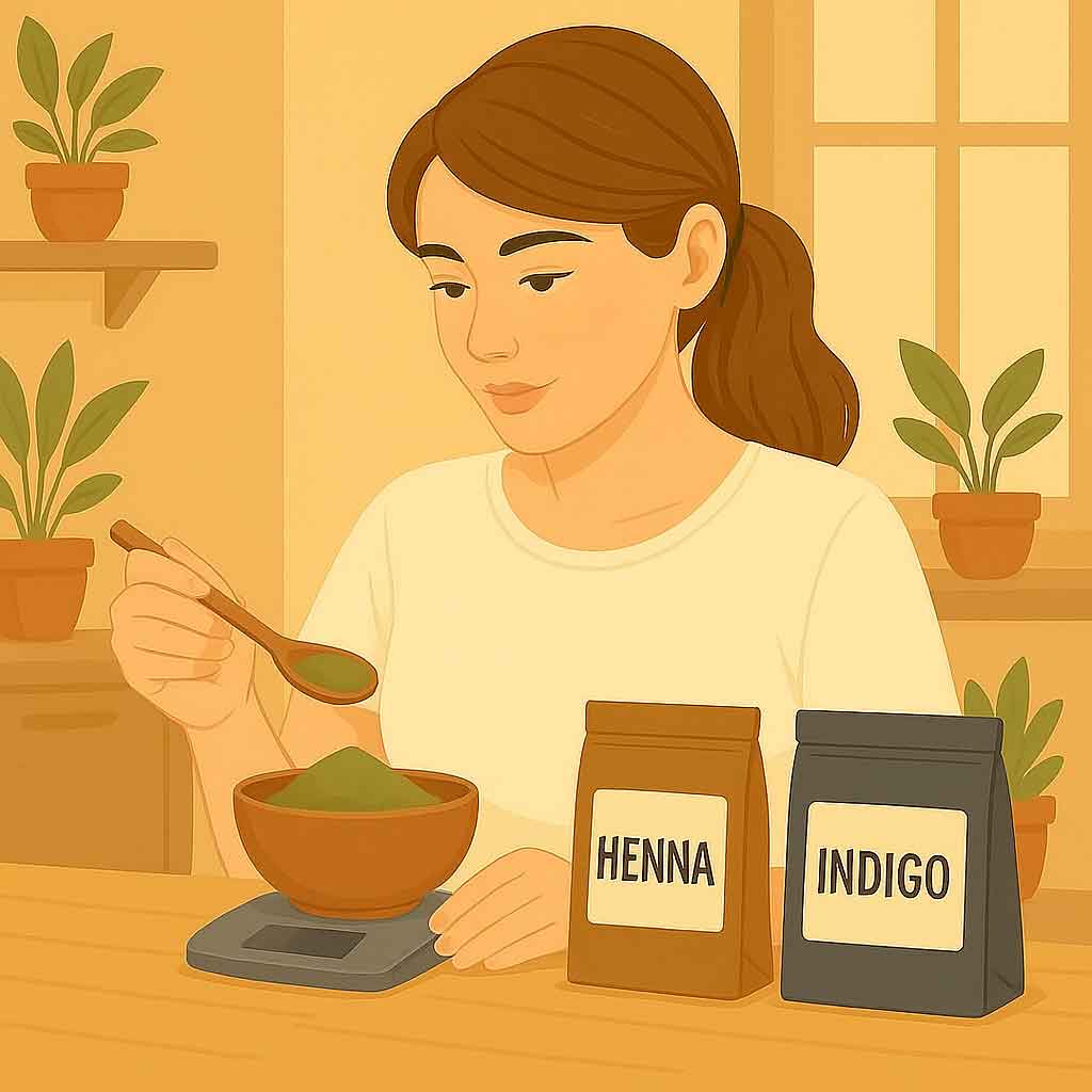 🔸 Luego, escoge la proporción de henna + índigo según la tabla de tonos.