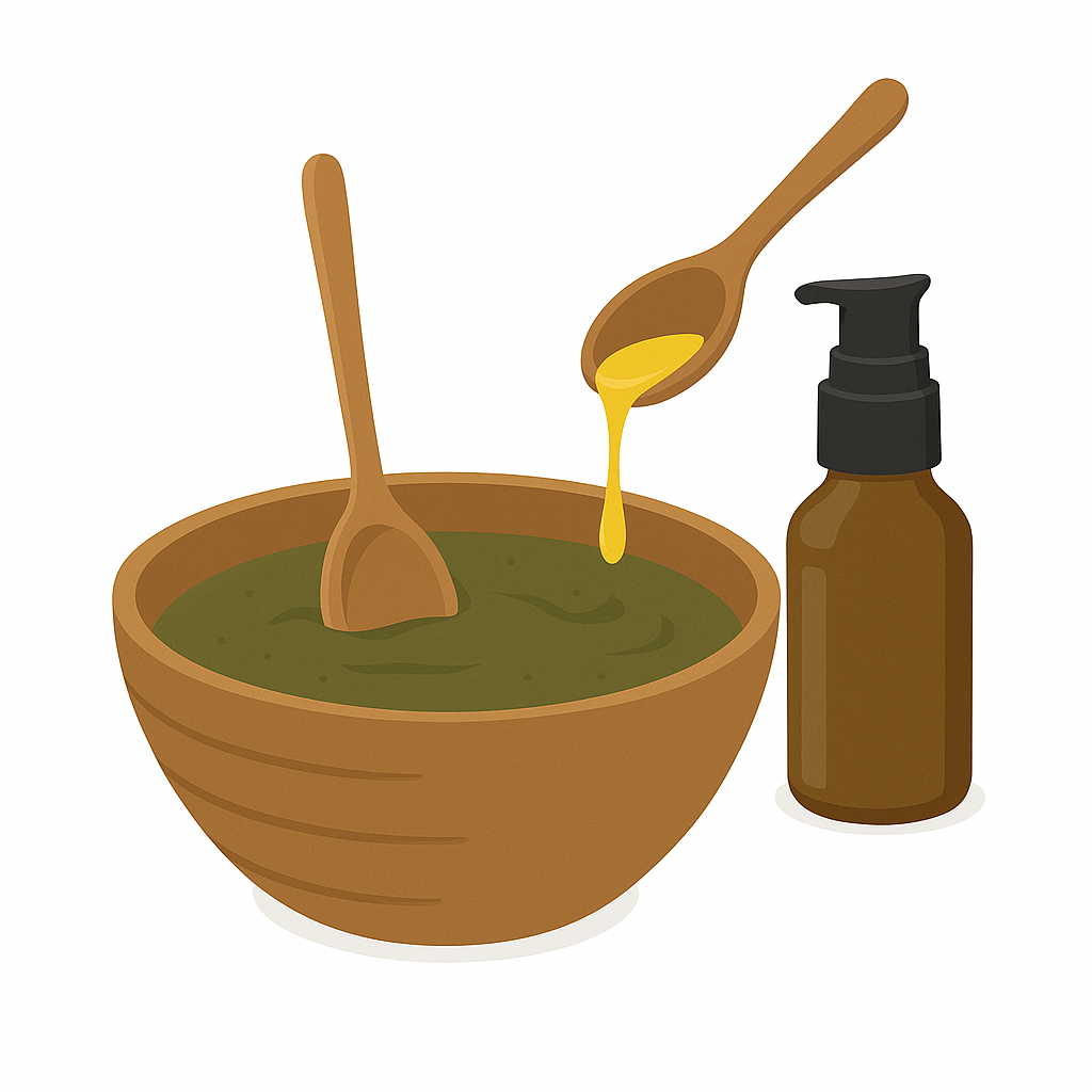 🌿 1 o 2 cucharadas de aceite natural, como aceite de amla, macadamia, almendras, argán, jojoba, avellanas u oliva. (Evita los aceites que contengan siliconas 🔴)