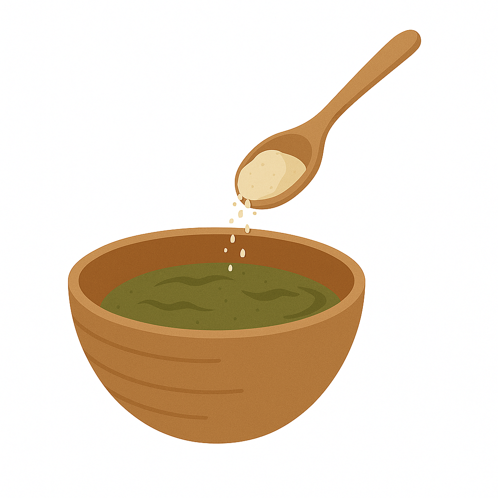 🌿 1 cucharada de polvo de amla o 1 cucharada de jugo de limón o vinagre de manzana. El polvo de amla es ideal porque además de ser un ingrediente ácido, aporta nutrición y fortalece el cabello.